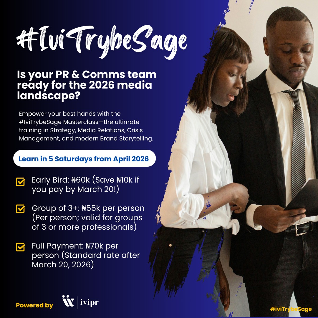 Following the success of IVI Trybe—our flagship training and mentorship program for aspiring PR pros—we are evolving. IVI Trybe Sage is an upcoming initiative designed for the “Sages” of the industry: senior-level executives and communication leaders who need advanced, intelligence-led training to master the future of PR. From AI integration in communication to navigating Nigeria’s communication landscape, IVI Trybe Sage will be the hub for elite PR intelligence. Stay tuned for our launch.